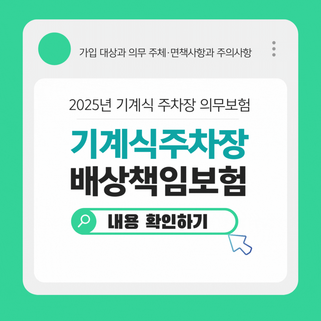 기계식주차장 운영자는 「주차장법」에 따라 반드시 배상책임의무보험에 가입해야 합니다. 가입 대상, 보장 범위, 면책 규정과 신청 절차를 정리했습니다.